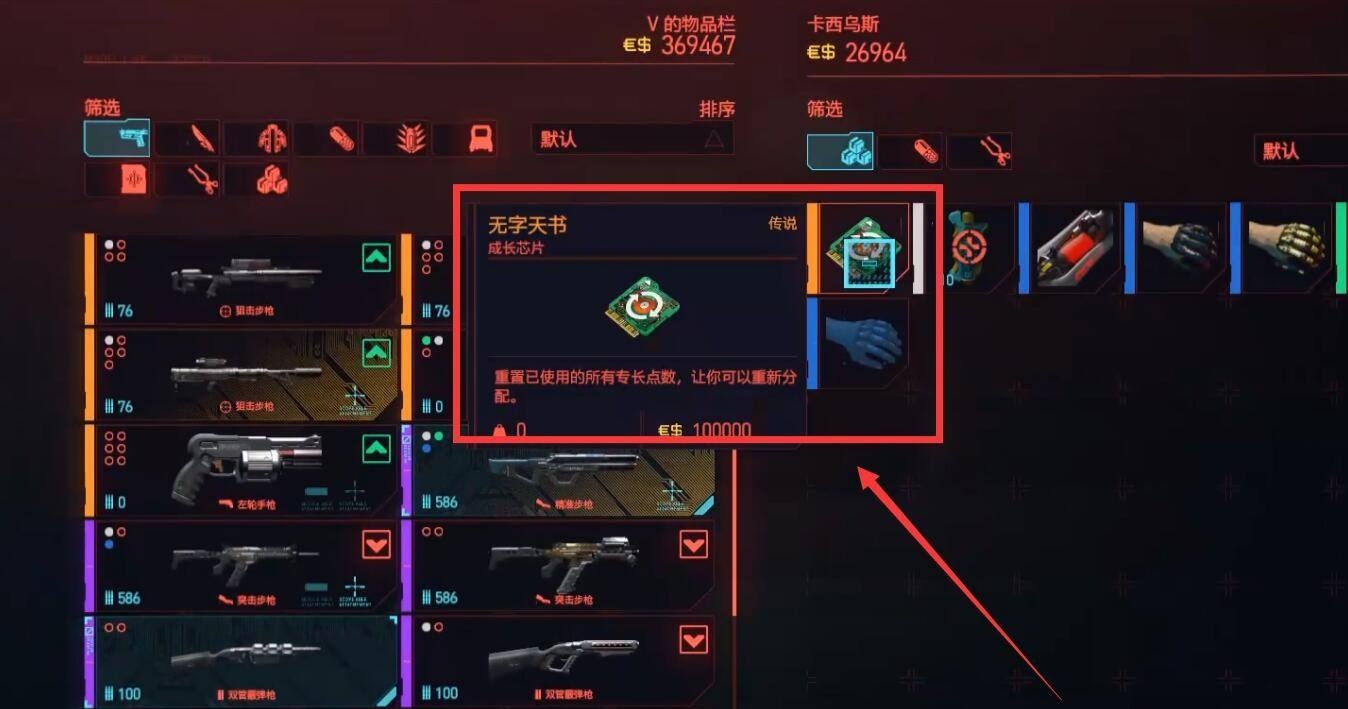 首頁 賽博朋克2077 問答 賽博朋克2077怎麼重置屬性點? 2022-12-16 1.找到賽博朋克2077游戲中的商店。2.在此游戲的商店裡面找到無字天書道具,並且購買。3.使用無字天書即可以重置屬性點。