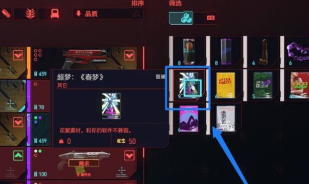 首頁 賽博朋克2077 問答 賽博朋克2077成人超夢在哪? 2022-12-17 賽博朋克2077成人超夢的位置:1、先傳送到櫻花集市。2、從傳送點左側走。3、進入鳥居就可以到扭扭街。4、在扭扭街有個成人用品店。5、進去和店員對話。6、打開商店就可以看到超夢。