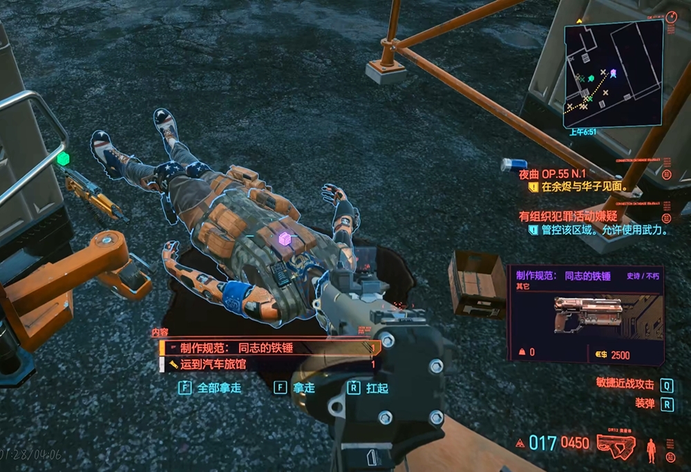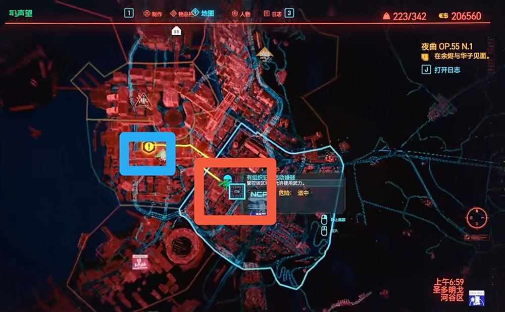 首頁 賽博朋克2077 問答 賽博朋克2077同志的鐵鎚在哪? 2022-12-17 1、在河谷區馬丁路德金大街有一個骷髏頭的支線,可以從圖中藍框(紅泥酒吧)直接傳送到紅框(骷髏頭)2、進入院子,擊殺其中的怪物,其中有一個死後,會有「同志的鐵鎚」掉落,拾取即可
