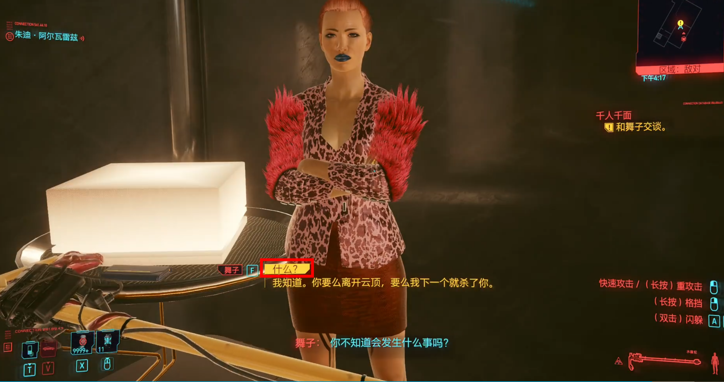 1、在舞子跟那三個黑老大談話的地方,殺了三個黑老大之後跟舞子談話先選「什麼」。