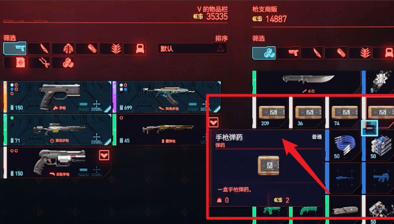 1、在游戲賽博朋克中,玩家購買子彈就需要去往地圖上的武器店來進行購買。