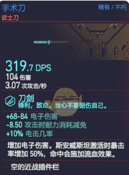 首頁 賽博朋克2077 問答 賽博朋克2077不朽武士刀的名字是什麼? 2022-12-19 武士刀是《賽博朋克2077》中的一種武器,在游戲中除了各種不朽級別的武士刀之外,還有一種就叫做武士刀的近戰,可以說是非常的直白了,其中有一把名為「手術刀」的武士刀,品質為不朽。