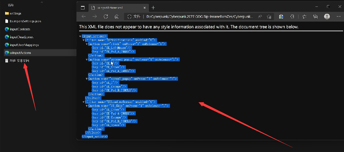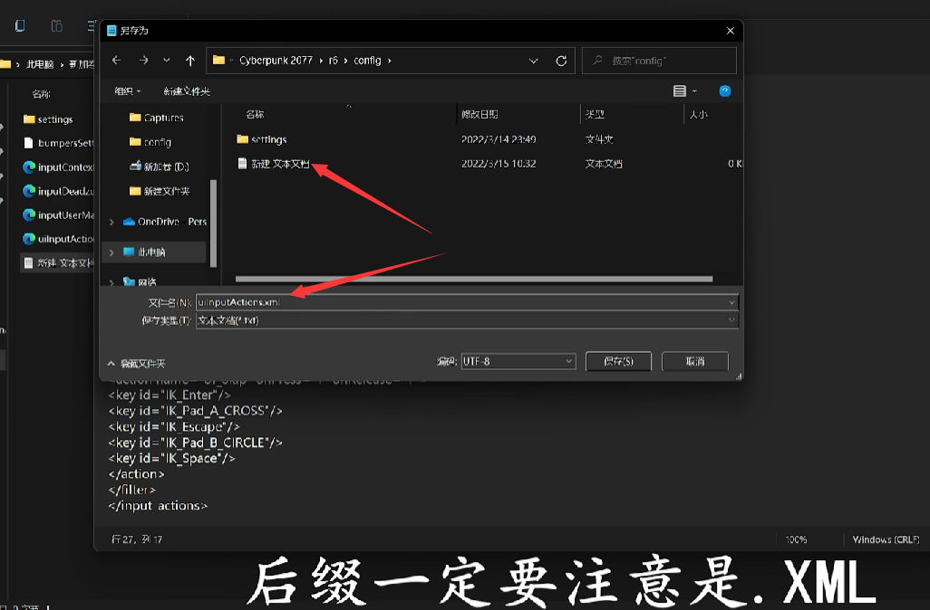 2、如果沒有的話在文件夾中新增文本文檔,輸入代碼,代碼可以在網上搜索到。輸入代碼後另存為當前目錄下,文件名為uilnputActions,後綴為.XML,點擊保存即可。