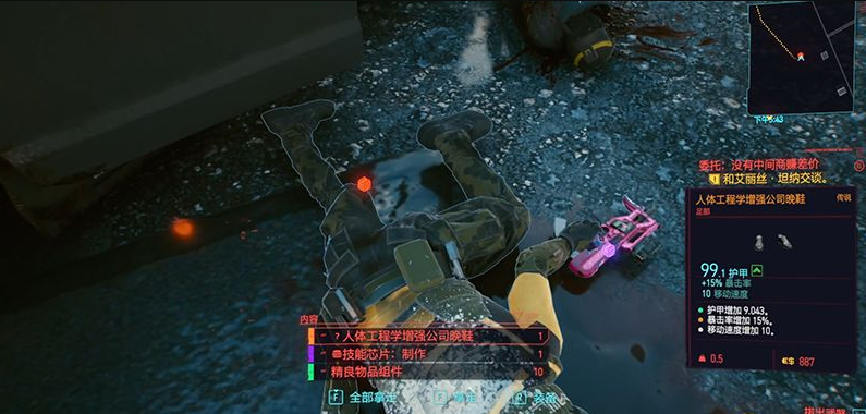 首頁 賽博朋克2077 問答 公司晚鞋的具體位置在哪裡? 2022-12-20 公司晚鞋的具體位置在憲章山-公司晚鞋位置如圖。 完成「向法律宣戰」支線後,這里會有廢棄車輛。 車輛旁的屍體上可以撿到公司晚鞋以及晶元、組件。