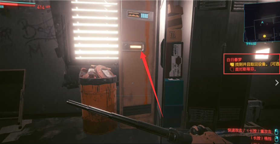 賽博朋克2077白日春夢任務中玩家需要逃離清道夫的老窩。各位玩家的裝備就在玩家出門後,三個人在一起的大廳旁邊這個櫃子里,在這裡可以找回裝備。注意清道夫的老窩這裡的NPC數量很多,且實力非常強,等級太低很難完成,建議提升等級和裝備再來。