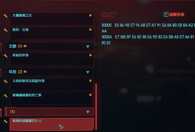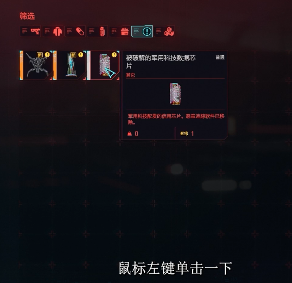 首頁 賽博朋克2077 問答 2077軍用晶元1萬怎麼拿? 2022-12-21 1、一開始先破解晶元,隨後會顯示禁止訪問,關閉頁面即可。2、然後打開背包,在任務道具裡面使用軍用晶元,滑鼠左鍵點擊一下,就能得到1W塊了。
