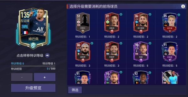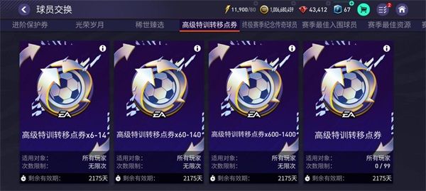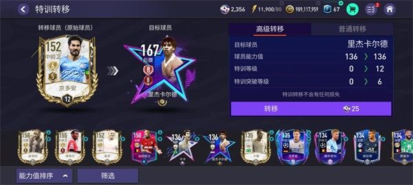 在【球員傳承】-【特訓轉移】界面,玩家消耗高級特訓轉移點券可以轉移球員的特訓等級,也可以選擇不消耗高級特訓轉移點券的普通轉移。