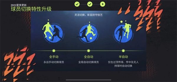 在夏日球迷嘉年華新版本中,玩家可以自定義球員防守切換邏輯(自動、手動、空中球),通過高階的球員切換方式可以輔助玩家完成更精確的球隊防守布置。