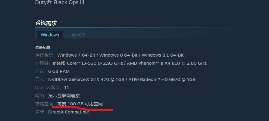 首頁 使命召喚 問答 使命召喚內存多少? 2022-12-26 使命召喚內存100G,使命召喚有系列有很多游戲,這里用Call of Duty®: Black Ops III舉例,登錄Steam查看其系統配置,其存儲空間要有100GB的可用空間