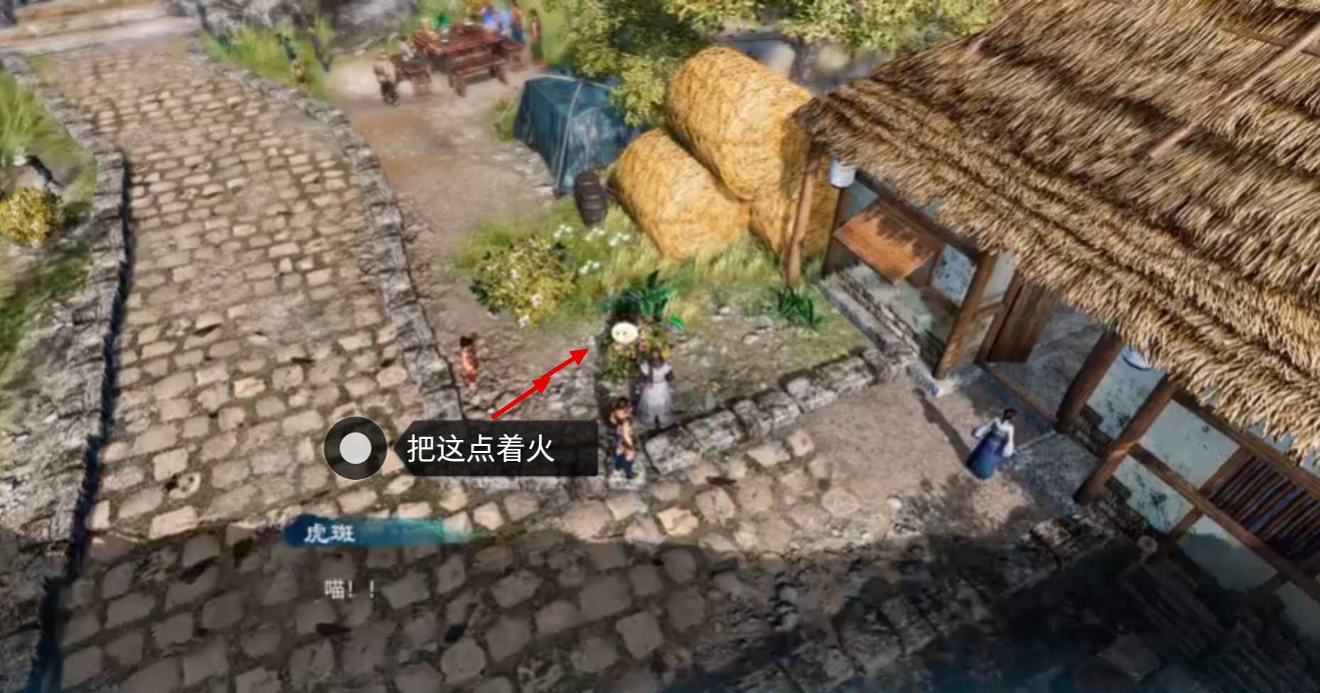 1.那個會哭的孩子剛開始在的地方有個花叢,著火後會出來一隻貓,逃跑到那兩個摔跤的小孩旁邊,要吃東西,這個貓是可以抓的。
