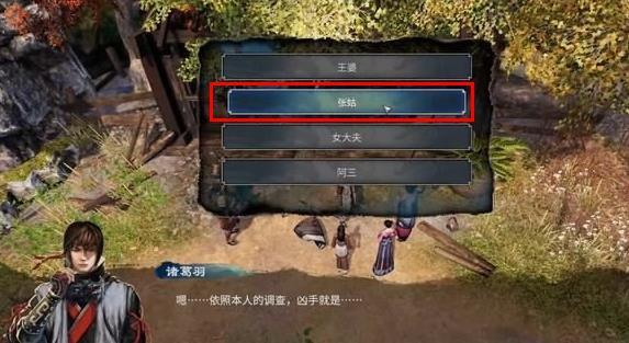 根據案件線索可知是張姑偷了王婆的砒霜,並加害於受害者,與衙役對話,指出兇手是張姑,任務完成。