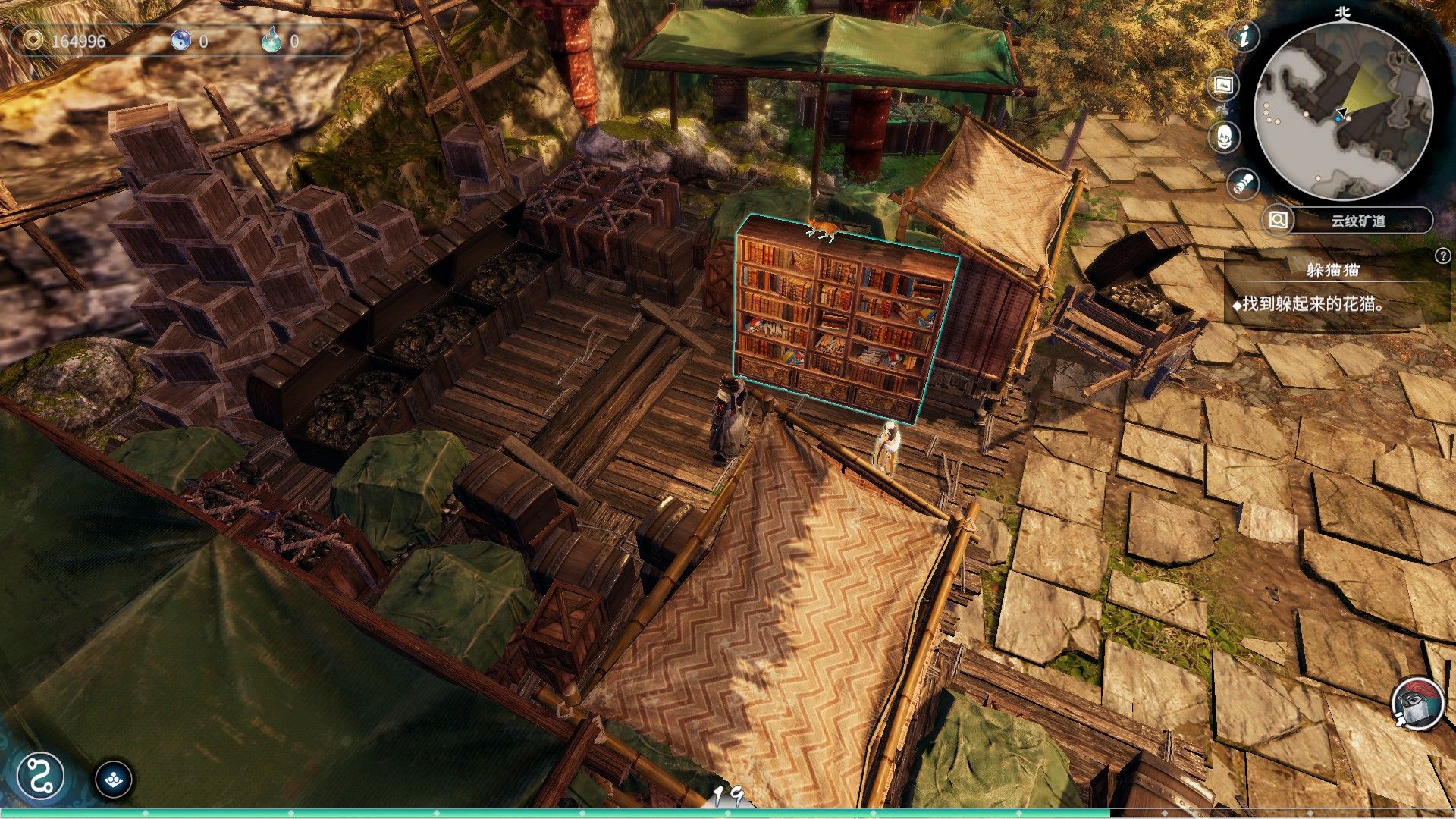 4、第四隻貓位置,右鍵運勁圖中的書架,全部找到後,躲貓貓任務結束
