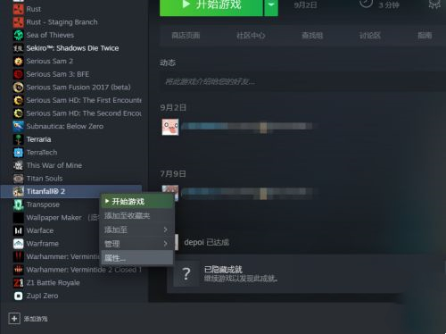 3.右鍵點擊泰坦隕落2,然後點擊屬性。