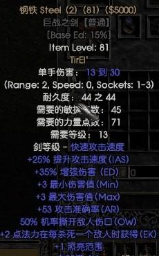 1.鋼鐵符文順序3 1,底材要求劍/斧/釘鎚,是暗黑2中最容易獲得的符文,加攻速、傷害、最小最大值、准確率,十分全面,近戰職業前面沒有好武器可以隨便找個底材做一個。