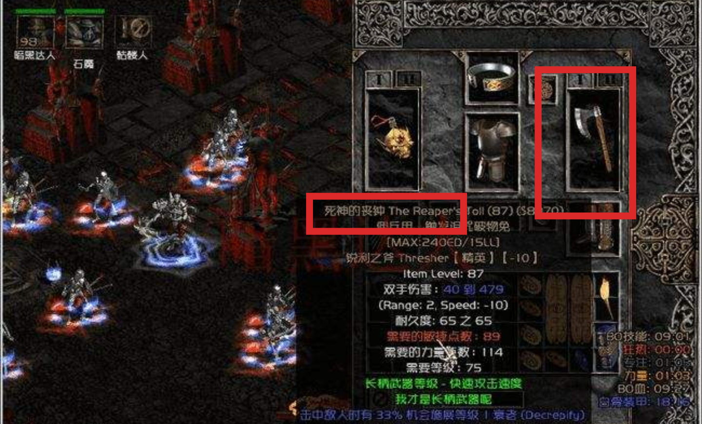 首頁 暗黑破壞神2 問答 暗黑破壞神2死神的喪鐘哪裡出? 2022-12-28 在暗黑破壞神2這個游戲中死神的喪鐘又叫銳利之斧在地獄的ACT1-5的BOSS,還有地獄ACT1的邪惡洞穴以及地獄ACT2的古代通道還有ACT5城內紅門里的金怪暴躁之皮容易爆。