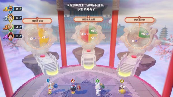為了讓每一個參與的玩家都能夠有參與感和體會到游戲的樂趣,游戲非常注重平衡性和細節。例如每過幾關就會有三個選項的幸運轉盤環節,菩薩形象的NPC協助送分來增加分數落後的玩家有機會反超。