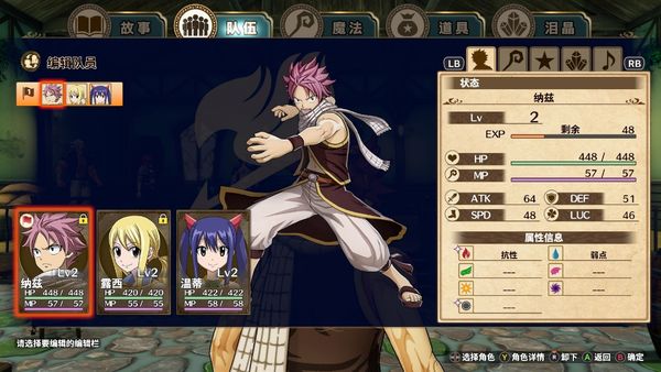 本作是分章節推進的RPG。游戲非常強調完成各種委託任務提升公會評價,收集素材去建設公會。以及通過完成個人劇情,收集對話事件,去提升各個角色的RANK和相互的好感度。這個內容方向很貼近《妖尾》的精神,相信原作粉都會認可。可操作的16個角色都有單獨的RANK,相互之間的好感度也是獨立的,這就導致提升RANK需要的資源,以及角色對話事件數量相當多,對有角色愛的朋友應該是個加成。並且如果你都照做收集了,系統給的回報也很大,足以讓游戲本身變得非常簡單。