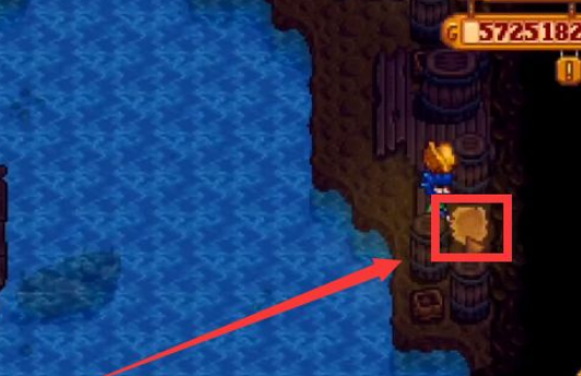 1、首先來到如圖所示的池塘拋出釣竿,還有右上方的位置也可以挖出金核桃。