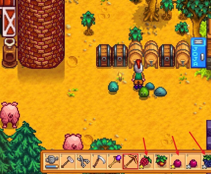 首頁 星露穀物語 問答 星露穀物語果酒怎麼做? 2022-12-30 1.走近小木桶,小木桶可以釀造啤酒,還可以釀造果酒。2.准備好水果。如果水果很多,再取出一些小木桶,把水果投入小木桶中准備釀果酒。3.幾天後果酒就釀好了。放入的是野梅水果,釀出來是野梅果酒,點擊收下。