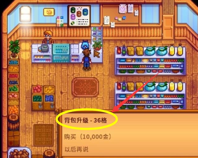 在星露穀物語這款游戲中,要想擴充背包首先來到皮埃爾商店,點擊紅色背包,然後再點擊購買,最後點擊背包升級就能擴大背包。