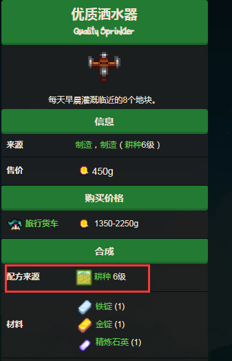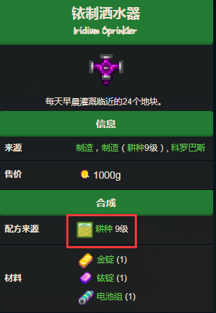 首頁 星露穀物語 問答 星露谷灑水器怎麼升級? 2022-12-30 星露谷灑水器升級方法為:玩家可以通過耕種等級升級來獲得高級灑水器的資格。1、優質灑水器耕種等級達到6級後便可解鎖,能為臨近的8格土地澆水。2、銥制灑水器耕種9級解鎖,自動噴灑24塊相鄰的地塊。