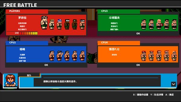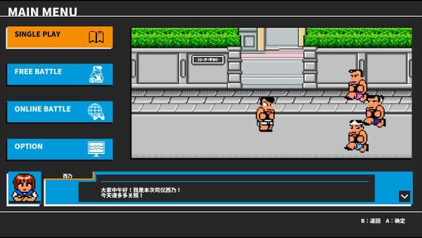 系列的操作感,從FC的雙截龍,熱血系列一路下來,已經非常成熟。基本操作並不復雜,上手不困難,各種細微的變化不少。道理上,大亂斗有聚會遊戲的性質,玩沒玩過都可以拿起來搓,但這個瞎搓很容易被教訓,對動作和角色的熟悉程度,在場面上的差別體現得比較明顯。
