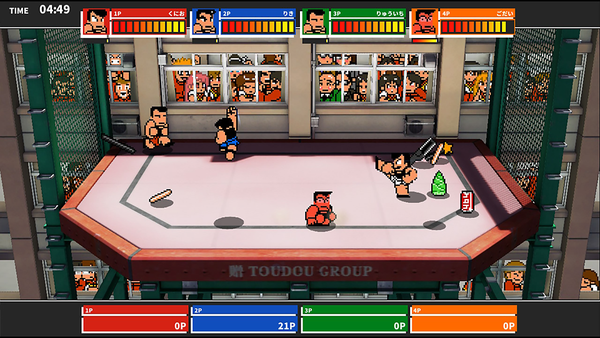 熱血系列提起來,老玩家都覺得很情懷。但從作品推出的年份和數量看,這是個並不顯老的系列,今天依然很有活力。NS版的《街頭大亂斗進行曲Mach》,是16年PS4《街頭大亂斗進行曲》的強化版本。而大亂斗進行曲的玩法,可以追溯到大家熟悉的FC《熱血進行曲:大運動會》裡面的大亂斗項目。從譜系來說,和《熱血格鬥》並不在一條線上。這是一個典型的聚會友盡遊戲。和小夥伴一起,你才能得到更多的樂趣。