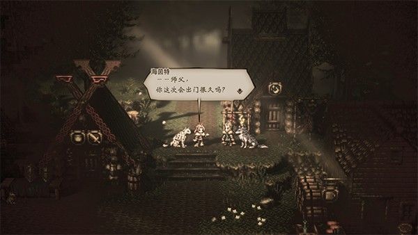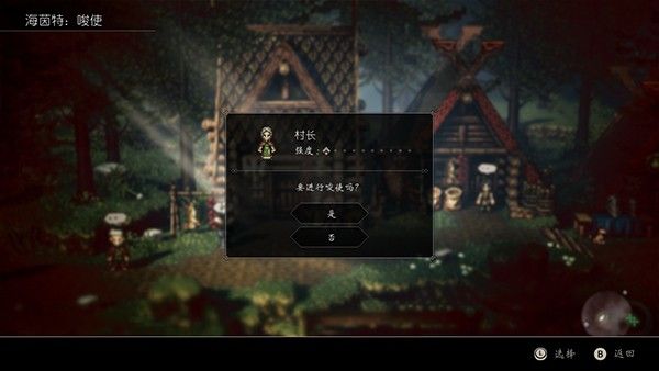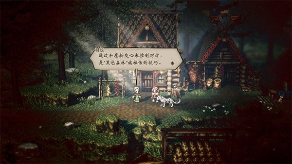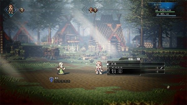 再來說說游戲中獨具特色的系統吧。8位主角都有自己固有的「場景指令」,商人可以「購買」村民的持有物,盜賊可以「偷取」村民的持有物。各種指令雖然都有趣味性和實用性,但由於組隊的條件限制,只有當前隊伍中的4位角色可以使用「場景指令」。