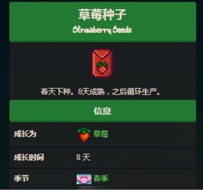 在星露穀物語中,可於每年春天的蛋蛋節(Egg Festival)時,到特殊商店中購買草莓種子;也可通過種子生產器獲得。