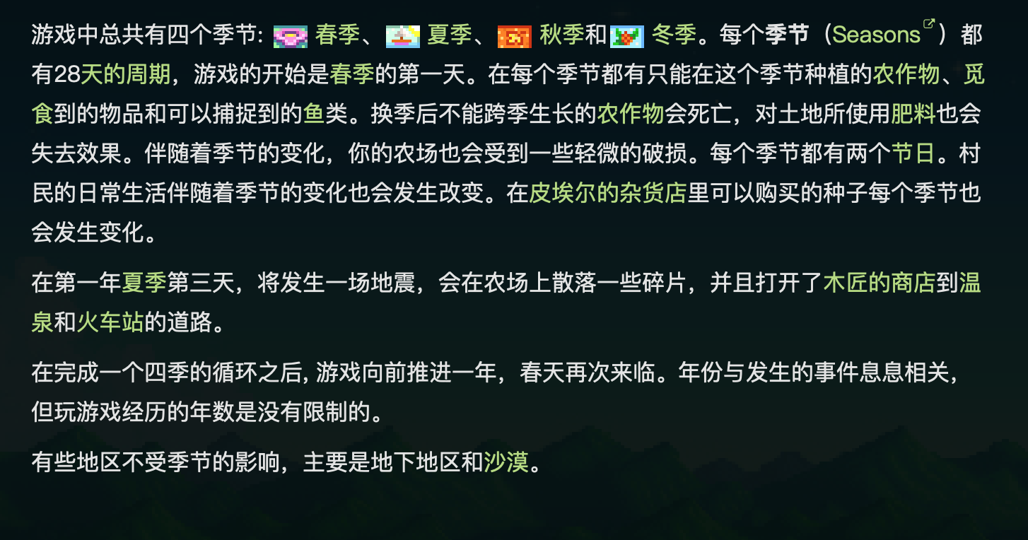 首頁 星露穀物語 問答 星露谷一共有多少年? 2023-01-02 星露谷這個游戲沒有時間上的限制,可以在一個存檔內無限期進行下去,沒有年份的限制,主要是四季的不斷循環(最開始會從春季開始),每個季節28天,只要你想一直玩下去,游戲中的時間線會一直進行下去。