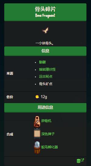 首頁 星露穀物語 問答 星露谷骨頭碎片在第幾層? 2023-01-02 星露穀物語游戲中,骨頭碎片可以通過打骷髏怪獲得,而骷髏怪一般在礦洞的40-80層刷新。完成五彩史萊姆任務,獲得怪物香水配方使用後下洞怪物刷新量會翻倍,反覆刷70-80層就可以搞到大量骨頭碎片。