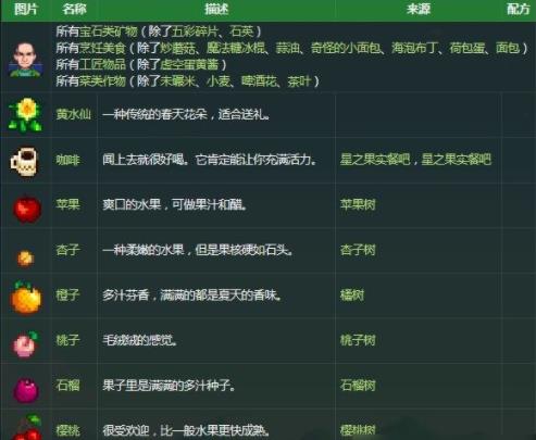 首頁 星露穀物語 問答 星露谷喬治喜歡什麼禮物? 2023-01-03 喬治喜歡的禮物:水果中喜歡蘋果、杏子、橙子、桃子、石榴櫻桃,喜歡黃水仙花,喜歡咖啡,還喜歡一些寶石礦物、工匠物品、食物和菜類作物。