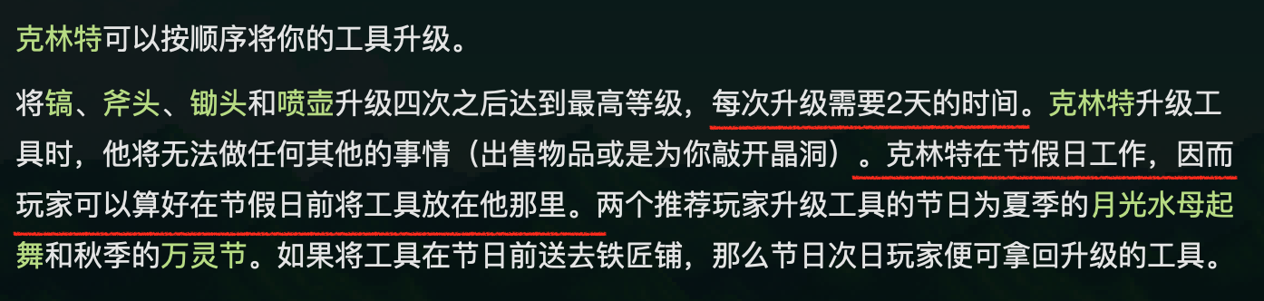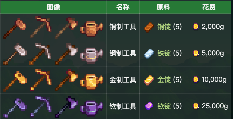 首頁 星露穀物語 問答 星露穀物語斧頭升級要多久? 2023-01-03 1、星露穀物語斧頭升級需要2天時間,我們需要去鐵匠克林特的鐵匠鋪進行升級,第三天去找克林特拿斧子即可。我們可以在節假日之前將工具放在克林特那裡進行升級。2、不同材質的工具升級需要不同原材料,需要提前准備好。