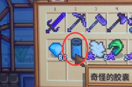 奇怪的膠囊是游戲中得以一個彩蛋事件,作用就是單純的彩蛋,每天有1%概率會發生。在獲得這個膠囊並放置三天之後,膠囊會碎,裡面的東西會跑掉,但不知道到底是什麼東西。獲得膠囊的方式其實就是隨機的,出現前的徵兆是存檔的時候會提示UFO相關的內容。