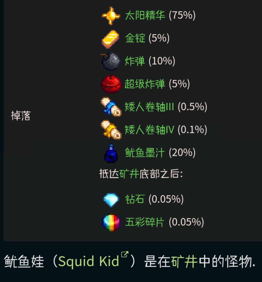 在星露穀物語這款游戲中,魷魚娃是在礦井中的怪物。魷魚娃會突然移動,也可以懸停在岩石上,並且向玩家發射火球,火球碰到牆壁後會反彈。