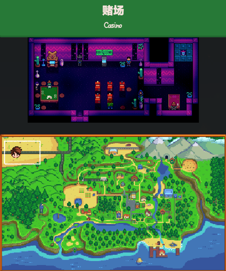 首頁 星露穀物語 問答 星露谷齊先生的賭場怎麼進入? 2023-01-03 1、賭場(Casino)是游戲星露穀物語的一個地點,位於沙漠,可以從綠洲的後門進入。我們想要進入賭場,就必須先完成「神秘的齊」任務,就可以在房屋旁邊的柴垛中找到會員卡。2、之後我們前往賭場,點擊保鏢出示會員卡之後,即可進入。