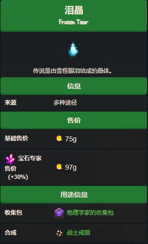首頁 星露穀物語 問答 星露谷淚晶在第幾層? 2023-01-03 玩家可以在礦井裡第40層至79層發現,或是擊殺沙塵惡靈、用淘盤、打開釣魚寶箱獲得,玩家還可以在冰封晶洞處開到淚晶,淚晶傳說是由雪怪眼淚結成的晶體。