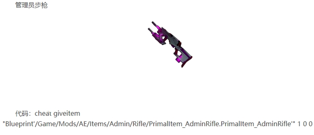 管理員步槍近戰傷害:10萬,耐久:無限。喜歡的槍的玩家可以輸入代碼來方舟生存進化里體驗感受一把。