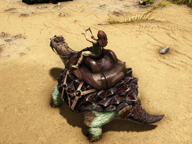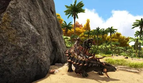 6、之後再馴服甲龍,這東西非常可靠,打鐵好手,防禦力相當高,還有不俗的攻擊,3頭加血的甲龍碰到霸王龍都可能有一戰之力。而且這貨移動速度緩慢,訓他完全沒半點難度,就慢慢風箏或者卡住就行。這樣基本前期的生存,採集問題都解決了。