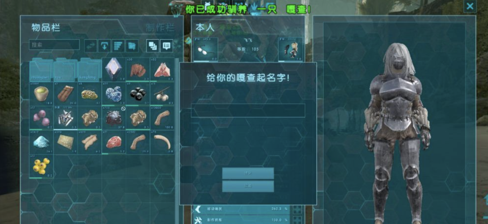 2、馴服的時候把石制恐龍門扔到嘎查面前,一組至少20個,然後嘎查會自己吃。