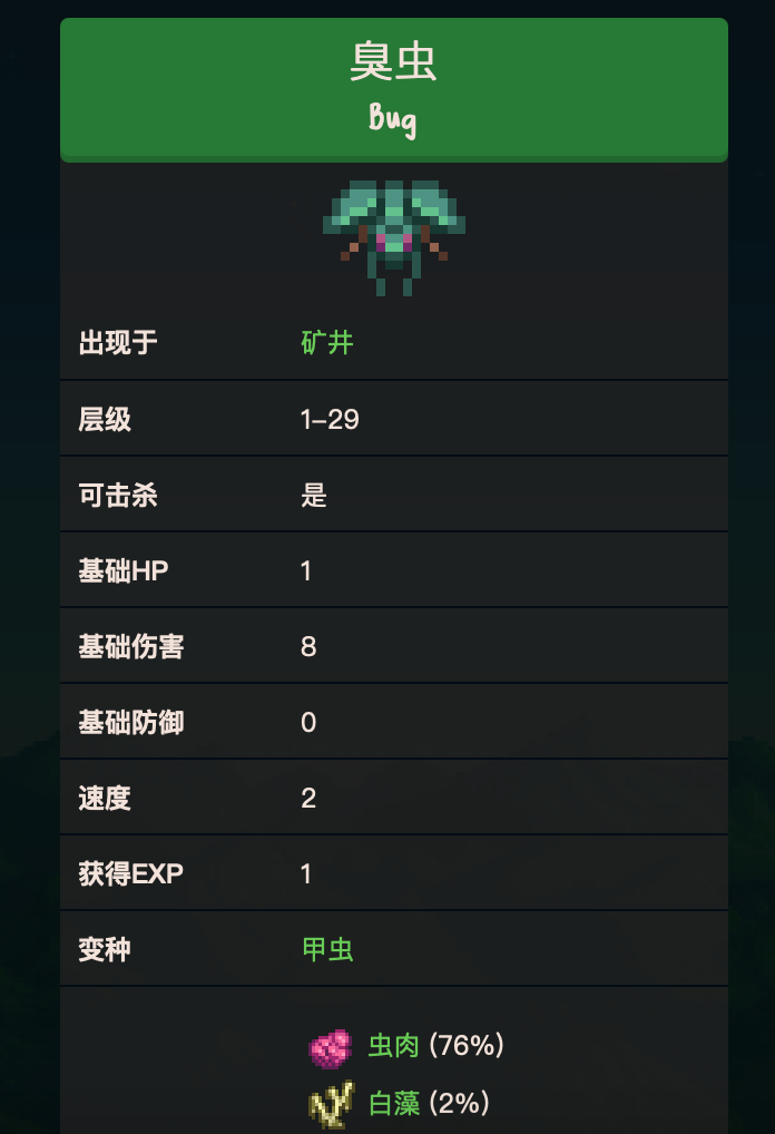 首頁 星露穀物語 問答 星露谷礦場蟲肉幾層多? 2023-01-06 1、蟲肉在星露穀物語游戲中從臭蟲、洞穴蠅和蛆身上掉落,可用來製作魚餌和萬能魚餌。2、臭蟲大概率會掉落蟲肉,一般分布在礦井的1-29層。