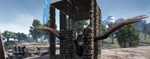 5、步驟5:然後打開門騎上翼龍(只能是無齒翼龍和古神翼龍)去把要抓的龍引到房子里關門,怎樣我們就可以安心將其馴服了。