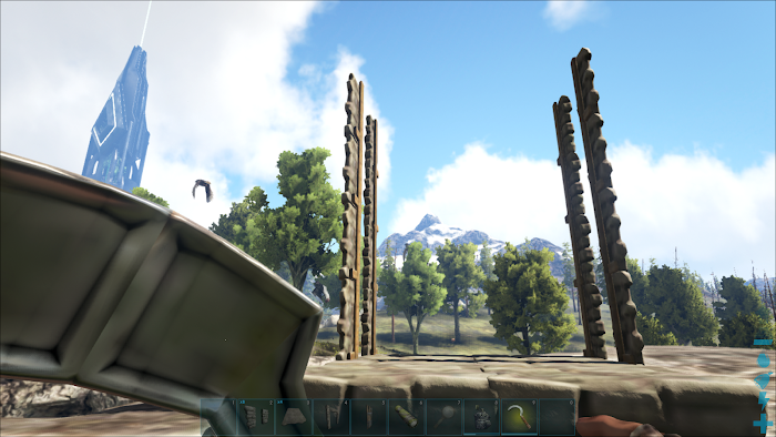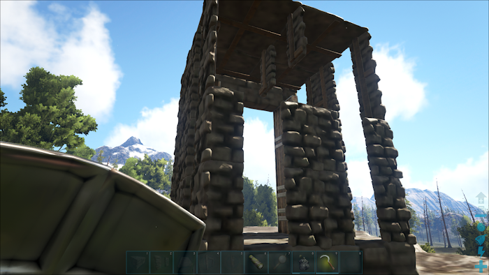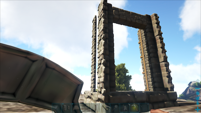 3、步驟3:在門框處放置恐龍門框和恐龍門。