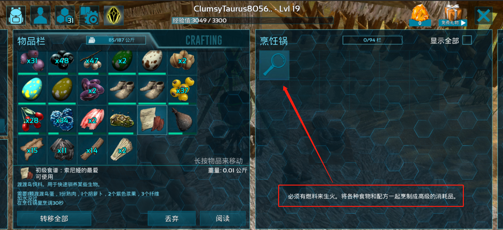 首頁 方舟:生存進化 問答 方舟烹飪鍋為什麼怎麼用都沒反應? 2023-01-06 必須要先使用燃料才可以使用,放置烹飪鍋,烹飪鍋製作好之後需要放在地面上或者建築物上才能使用,然後是打開烹飪鍋,靠近烹飪鍋長按E選擇打開物品或者直接按F鍵都可以打開烹飪鍋。