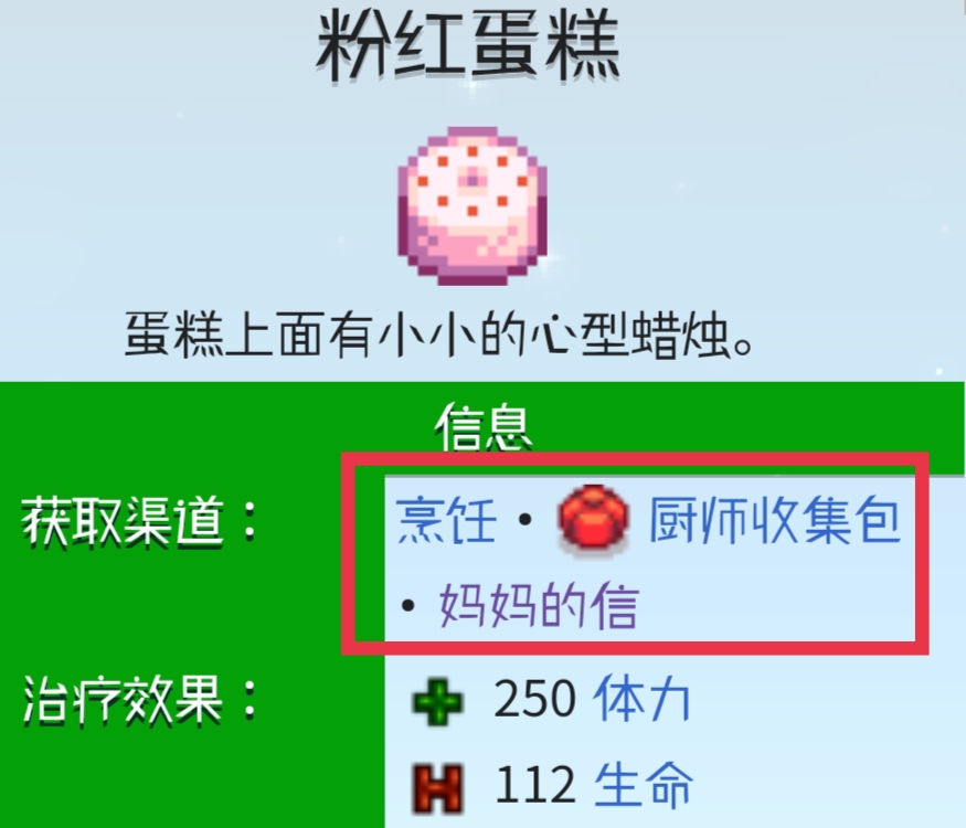 首頁 星露穀物語 問答 星露谷粉紅蛋糕在哪買? 2023-01-07 粉紅蛋糕是一道菜餚,如果你的角色是男性,那麼在你賺到120000金後就會收到媽媽寄來的粉紅蛋糕。在冬日星盛宴中也可以作為禮物收到。完成布告欄的廚師收集包也可以獲得3個粉紅蛋糕。