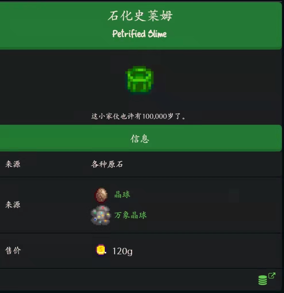 首頁 星露穀物語 問答 星露谷石化史萊姆礦物有什麼用? 2023-01-07 石化史萊姆礦物作用介紹:在游戲《星露穀物語》中,石化史萊姆可完成史萊姆魚塘在7條魚的任務,可在晶洞和萬象晶石里發現,建立史萊姆小屋後也能在史萊姆球里找到石化史萊姆。