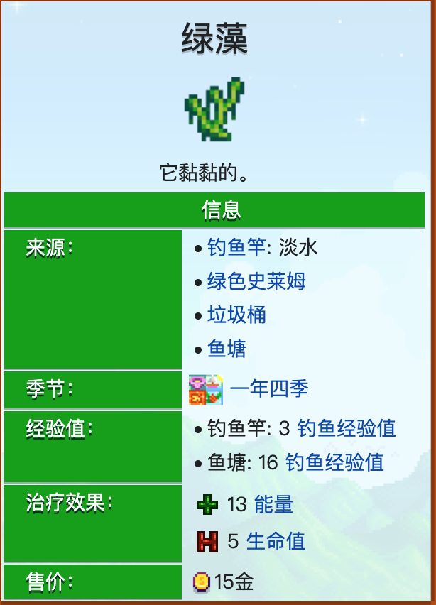首頁 星露穀物語 問答 星露穀物語綠藻在哪獲得? 2023-01-07 綠藻(Green Algae)在游戲中是一種可以在所有季節淡水捕魚地點找到的物品,隨意釣一釣都能獲得。所以我們只需要找一片淡水水域通過釣魚的方式即可獲得綠藻。