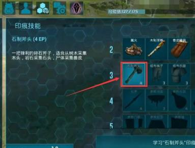 3.進入印痕技能中後,我們點擊石斧工具圖標按鈕,將石斧工具給學習了。