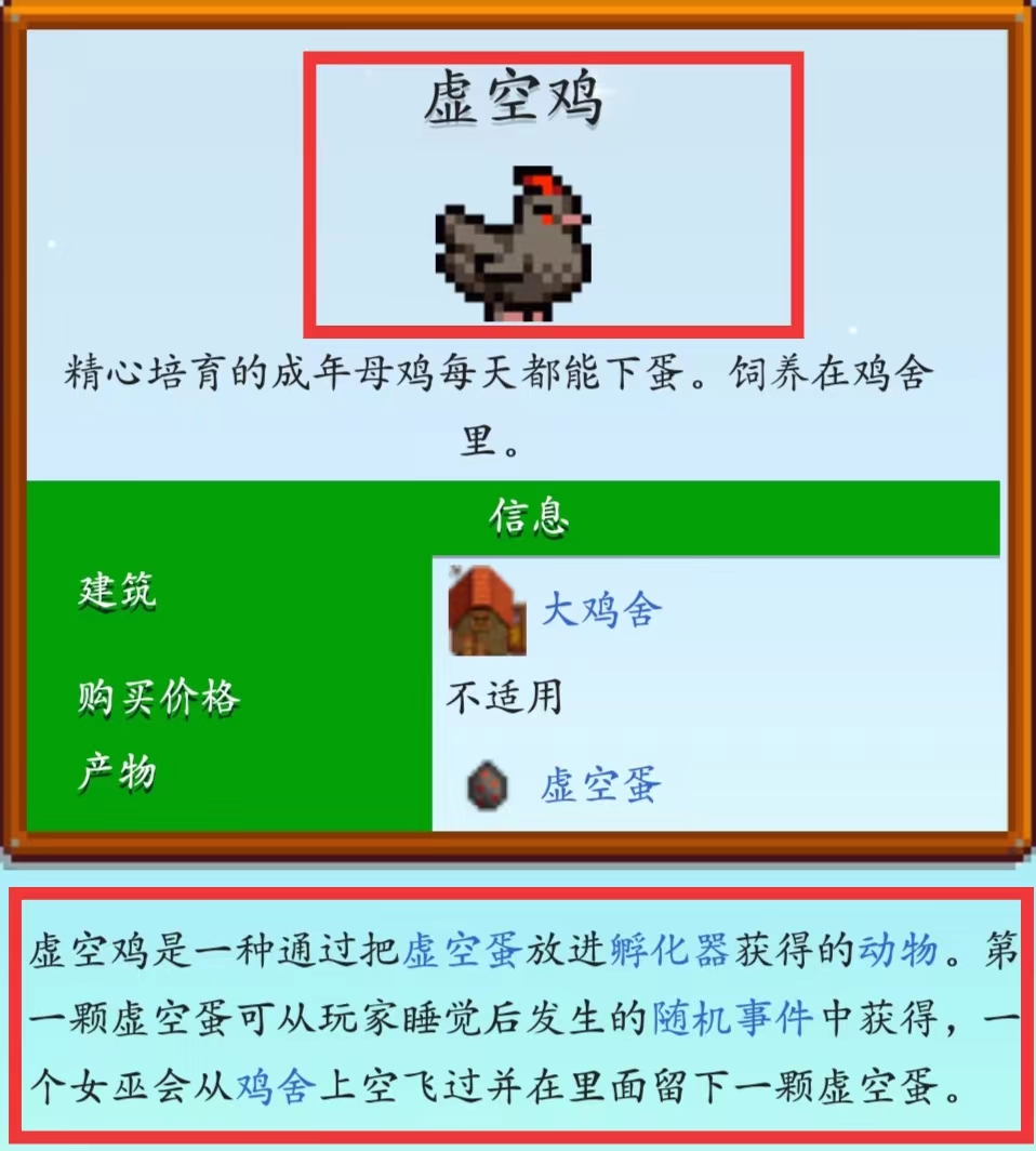 首頁 星露穀物語 問答 星露穀物語虛空雞怎麼弄? 2023-01-08 虛空雞獲得方法介紹:在游戲《星露穀物語》中,虛空雞是一種通過把虛空蛋放進孵化器獲得的動物。虛空蛋可從玩家睡覺後發生的隨機事件中獲得,也可以在女巫從雞舍上空飛過時獲得。