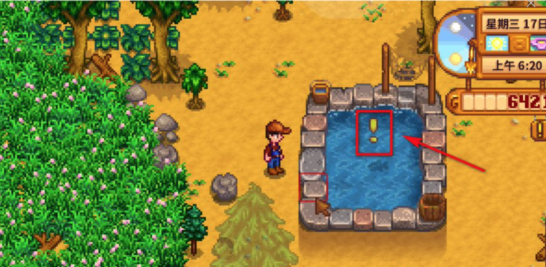 首頁 星露穀物語 問答 星露穀物語魚塘怎麼擴建? 2023-01-08 1、魚塘(Fish Pond)是游戲星露穀物語中的一種農場建築,玩家可以在羅賓的木匠商店建造。位置如下。2、魚在魚塘里繁殖到最大容量後,魚塘上方會出現一個嘆號,點擊嘆號便可查看魚塘任務。3、完成魚塘任務可以增加魚塘的容量。